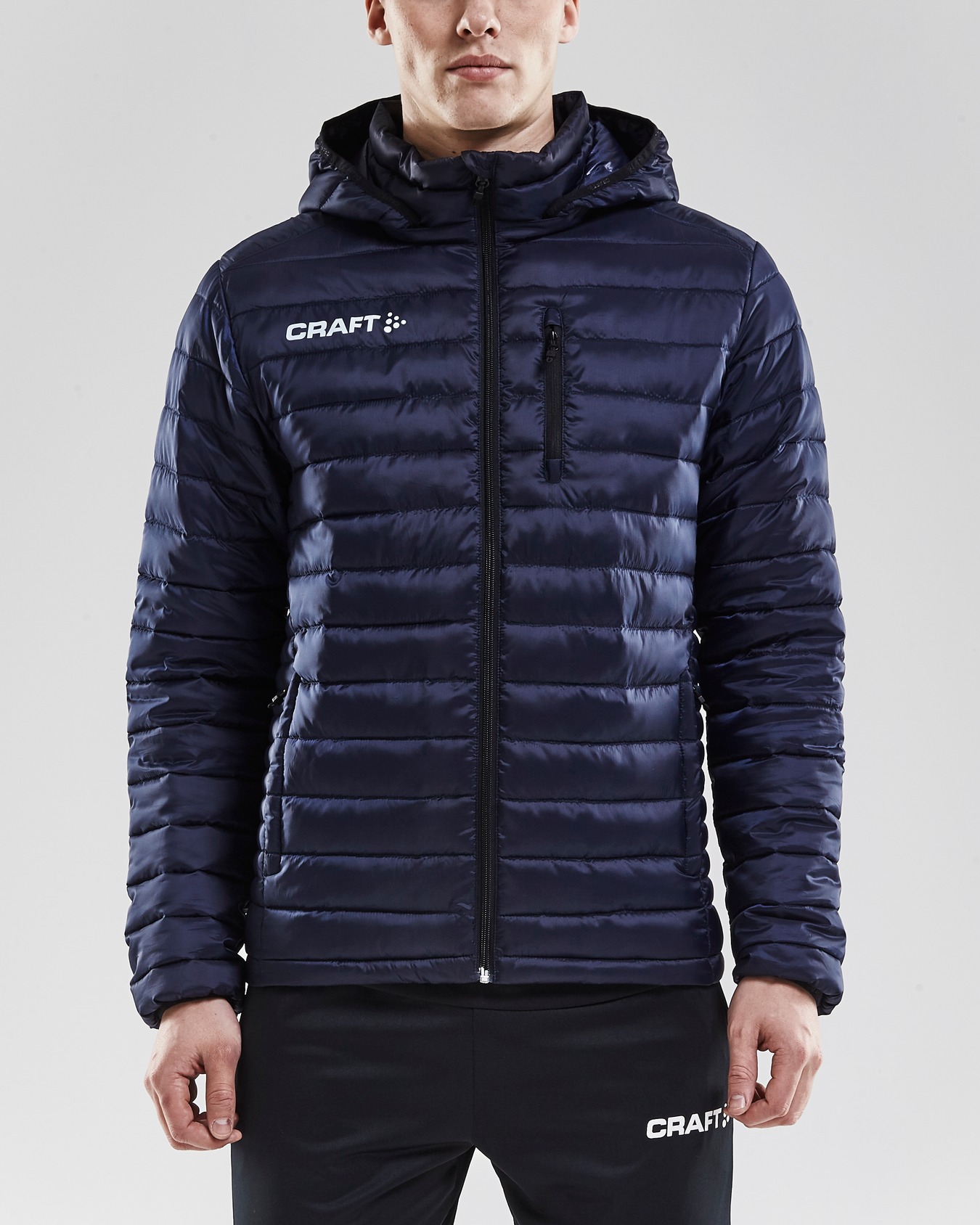 Vattert, vind- og vannavvisende jakke som er perfekt til oppvarming eller som representasjonsjakke. Avtagbar hette, brystlomme med glidelås og justerbar nedekant. Vattering i mikrofiber med bra varmeegenskaper.