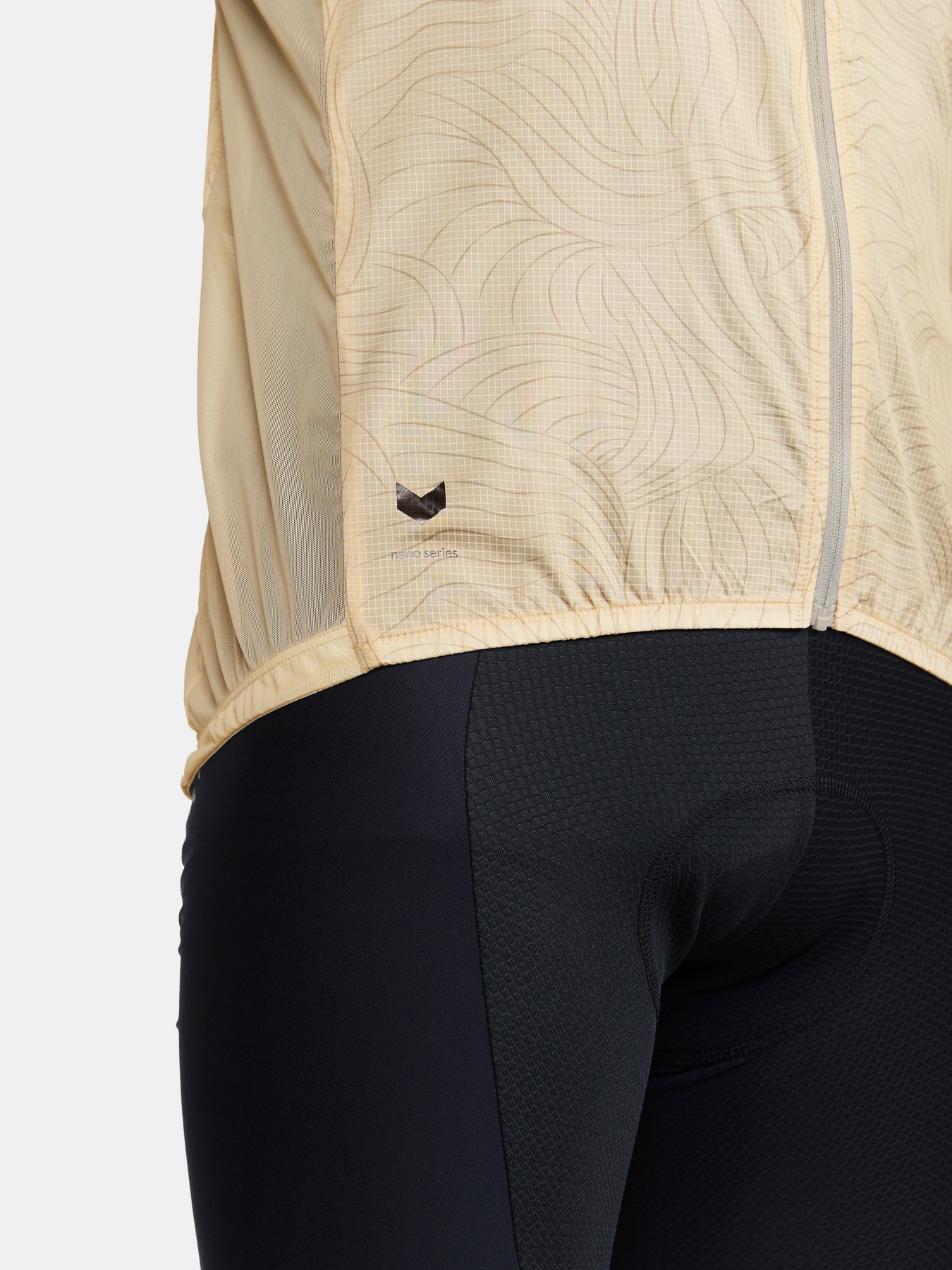 PRO Nano Wind Jacket er en tynn og svært lett sykkeljakke med suveren ventilasjon designet for toppprestasjoner. Denne teknisk avanserte sykkeljakken er laget av eksepsjonelt tynne og lette materialer som både beskytter mot vinden og gir fantastisk ventilasjon for optimal regulering av kroppstemperaturen. Stretchige meshpaneler på sidene og perforeringer i øvre rygg gir ekstra ventilasjon for maksimal ytelse og komfort under intensive sykkelturer. Kan enkelt pakkes ned i sykkeltrøyens baklomme. Eksepsjonelt lav vekt Nano er et teknisk avansert lettvektskonsept som holder hardtrenede syklister kjølige under intens sykling på varme sommerdager. Tynne og svært lette materialer, inkludert teknisk avansert mesh, gir effektiv ventilasjon og god kjøleeffekt. • Ekstremt lett materiale (40 g/m2) • Elastiske sidestriper i mesh gir en tettsittende passform • Perforert materiale i øvre rygg for ekstra ventilasjon • Ergonomisk formet krage • Reflekterende print og detaljer • Tettsittende passform